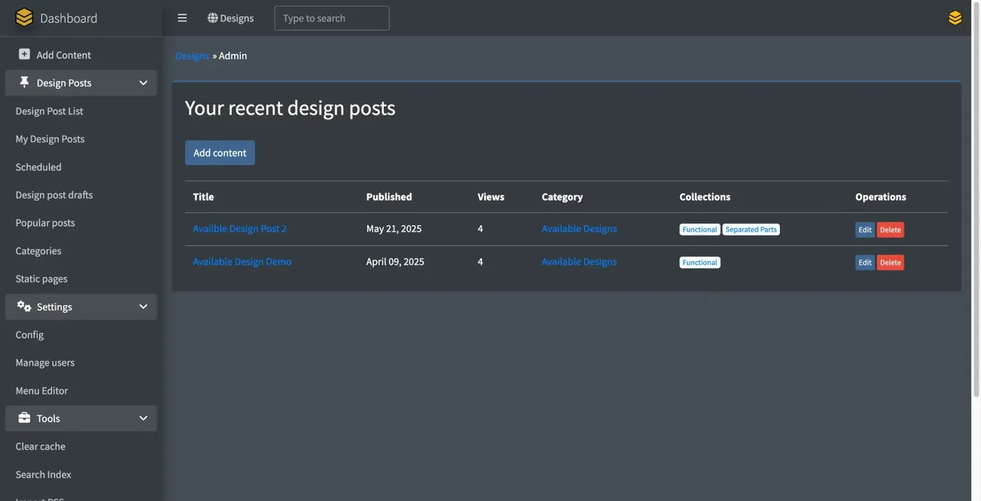Once logged in you will see a Dashboard with "Your recent design posts". If it's you first time it may say "no posts found."
